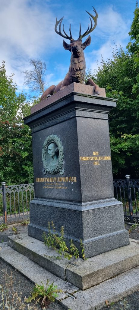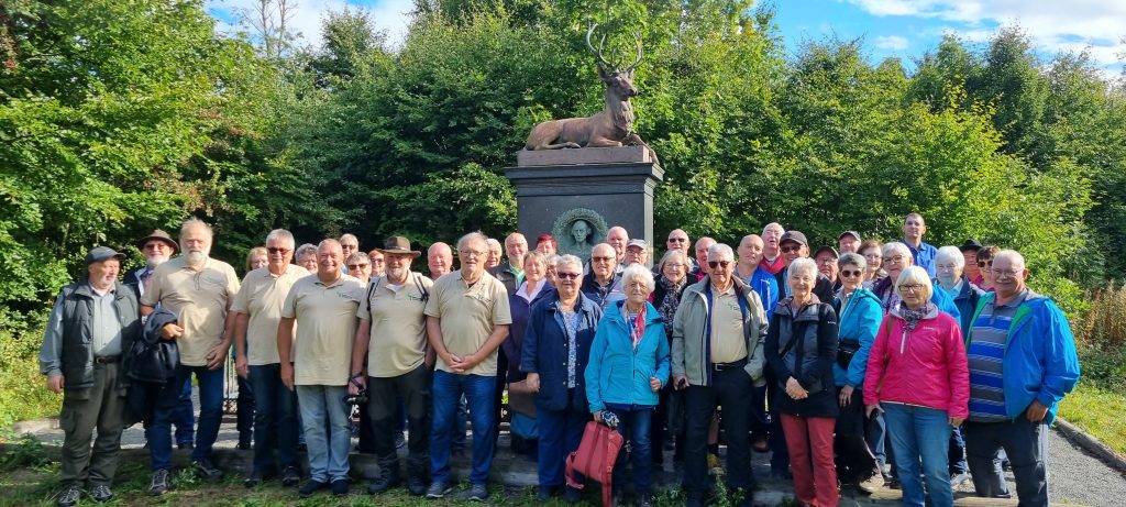 Der Waldbauverein Otterberg reiste Mitte September 2025 mit über vierzig Mitgliedern zur großen Waldbauexkursion in den Harz. Bereits auf dem Hinweg wurde ein Exkursionspunkt an der Staustufe Rappbodetalsperre eingelegt. Danach wurde das Hotel in Allrode / Thale bezogen. Am zweiten Tag führte Hans Schattenberg als Forstbetriebsleiter des Forstbetriebes Ostharz die Exkursionsteilnehmer:innen durch „seinen“ Wald. Zunächst gab es beim Pfeil-Denkmal im Forstrevier Güntersberge eine Einführung in die sächsisch-anhaltinische Forstverwaltung und speziell in den Forstbetrieb Ostharz. Schattenberg erläuterte auch die besonderen Umstände nach der Wende 1990: „Die Leute mussten an ihren Wald herangeführt werden“. Natürlich durfte die Vita des Forstklassikers Friedrich Wilhelm Leopold Pfeil (1783-1859) nicht fehlen. Pfeil wurde hier im Revier Dambachhaus geboren und er übte seine praktische Tätigkeiten überwiegend im Harz aus. Seine Beobachtungsgabe gilt als außerordentlich brillant. Als Autodidakt beteiligte er sich an wissenschaftlichen Diskursen um den Waldbau und um den Waldstandort. Er beschäftigte sich sehr intensiv mit der Waldkiefer und mit dem Anbau von fremdländischen Baumarten, denen er ablehnend gegenüber stand. Die Verleihung der Titel Oberforstrat und Professor waren die zwangsläufige Folge seiner zahlreichen Veröffentlichungen und Diskussionsbeiträgen, die durchaus kontrovers und kritisch waren. Sein auf ihn zurückgehendes „eiserne Gesetz des Örtlichen“ gilt bis heute und ist eine Maxime für die gesamte Forst- und Waldwirtschaft.